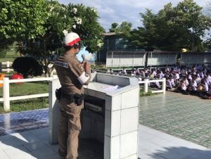 5 เจ้าหน้าที่ตำรวจจราจร ได้ออกประชาสัมพันธ์ อบรมให้ความรู้ด้านการจราจร สัญญาณจราจร และรณรงค์การขับขี่ปลอดภัยในพื้นที่
