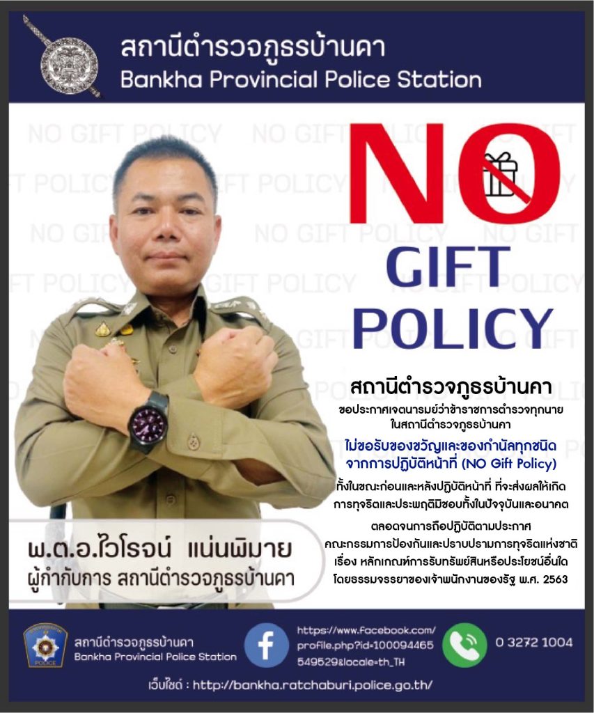 เจตนารมณ์ที่จะไม่รับของขวัญและของกำนัลทุกชนิดจากการปฏิบัติหน้าที่ (No Gift Policy) ฉบับภาษาไทย