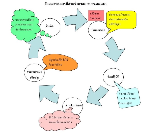 1) มีส่วนร่วมในการคิด ศึกษาและค้นคว้าหาสภาพและสาเหตุของปัญหาตลอดจนความต้องการของท้องถิ่นและชุมชน