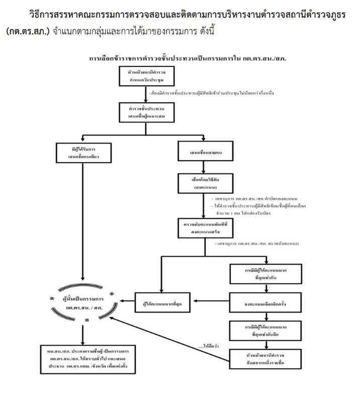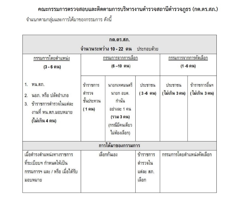 ที่มา: คู่มือการดำเนินการตำมระเบียบ ก.ต.ช. ว่าด้วยคณะกรรมการตรวจสอบและติดตามการบริหารงานตำรวจ พ.ศ. 2549